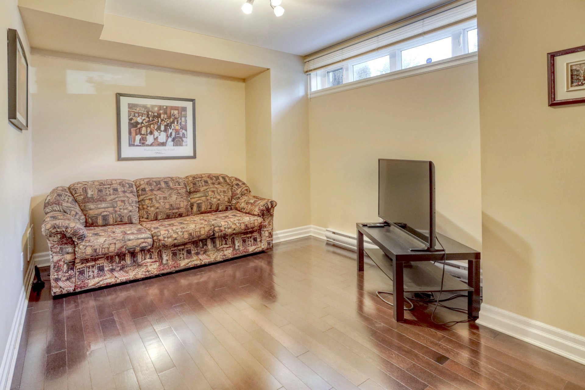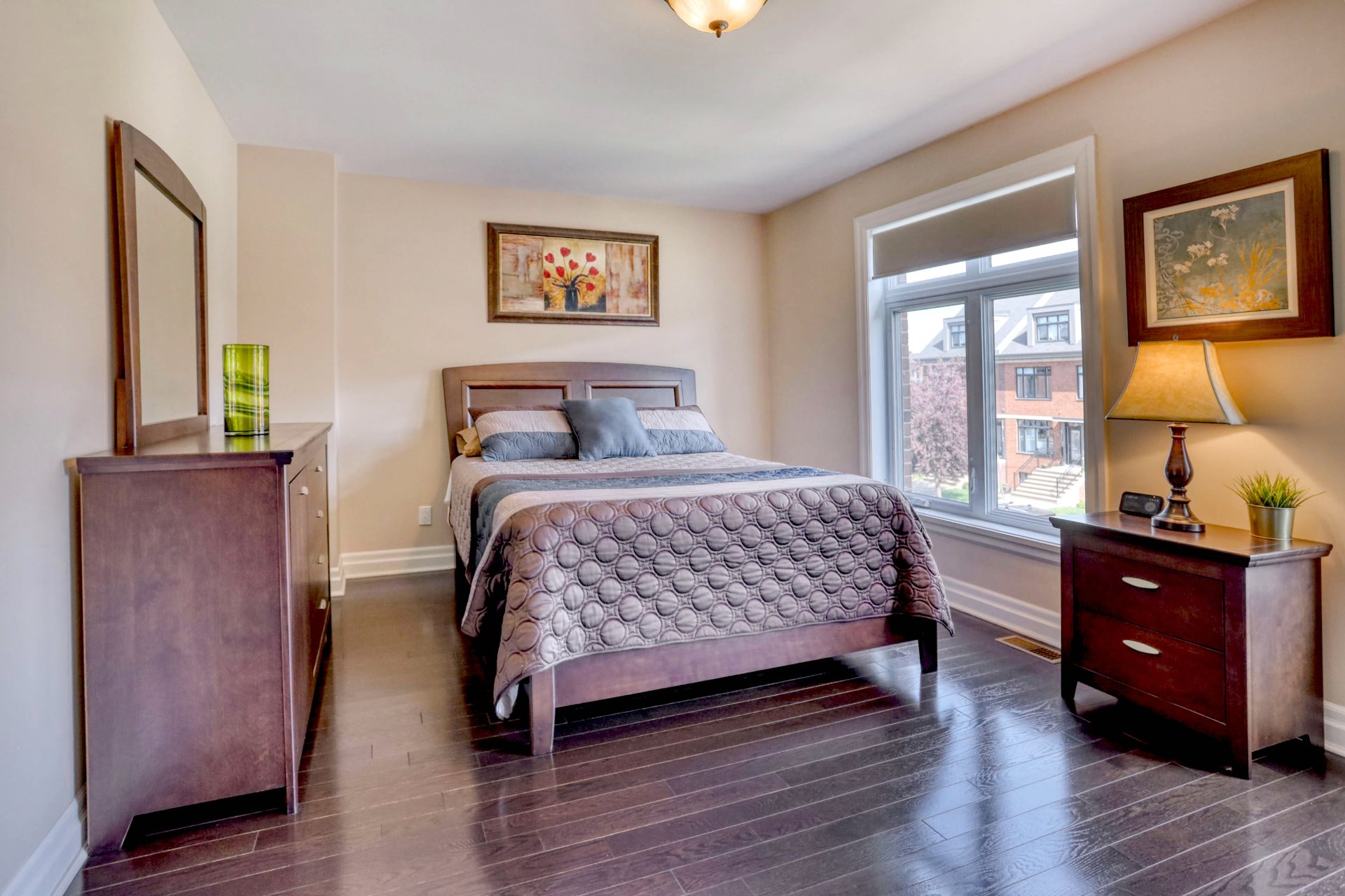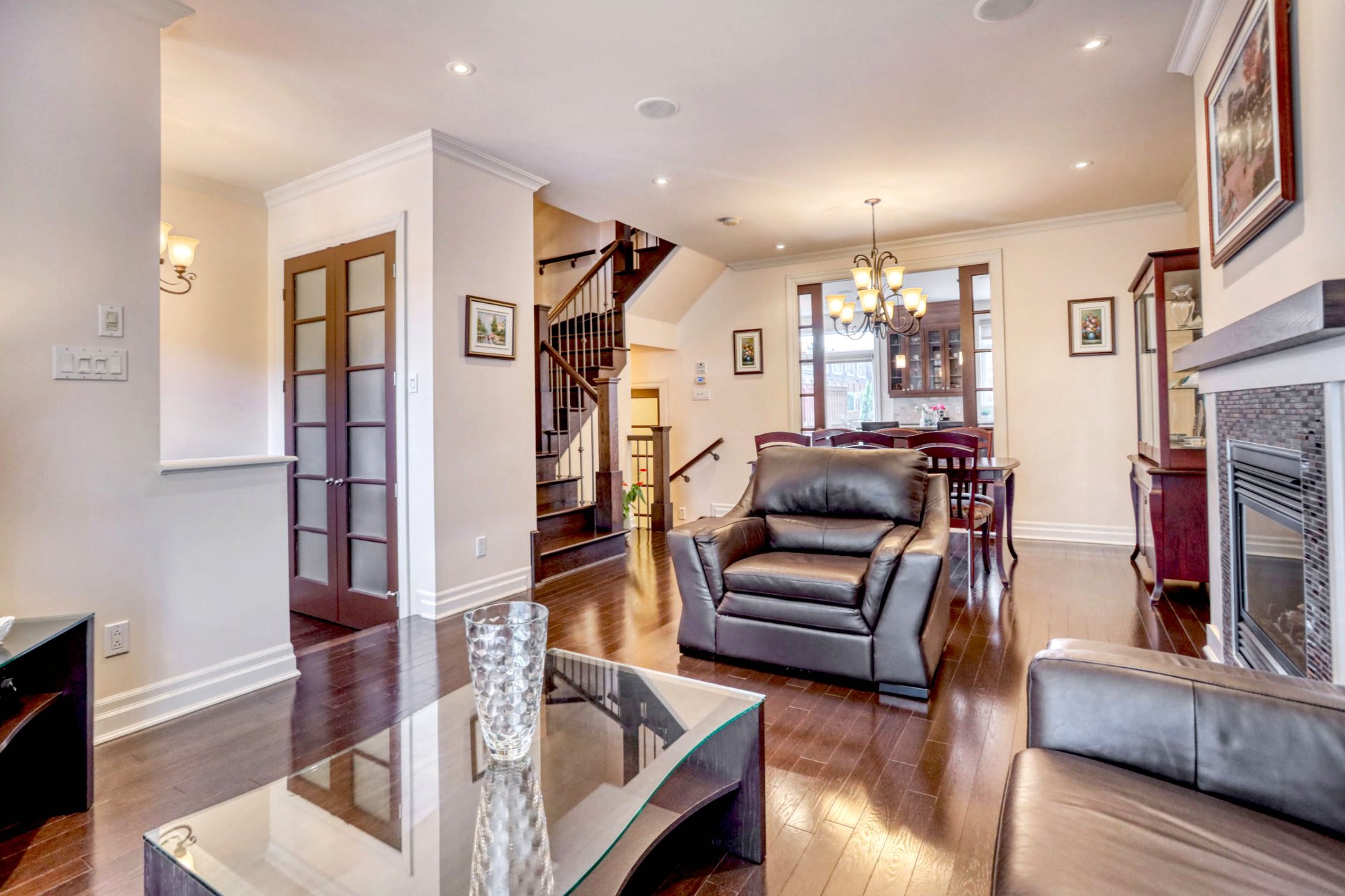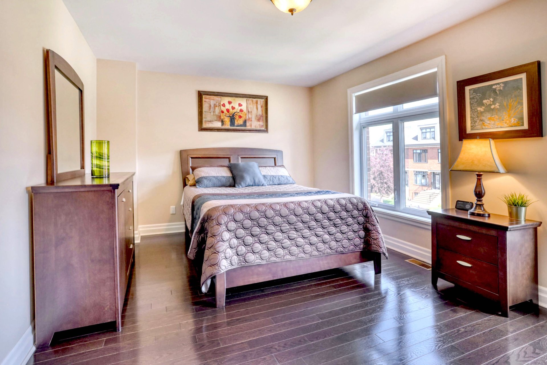 Immaculate townhouse by Sotramont - Les Villas Des Migrations - in fantastic condition. Steps to the park and located on a quiet street, this home offers a beautiful closed kitchen with granite counters, gorgeous wood floors throughout and plenty of light. Features three good size rooms, two full bathrooms with the possibility to have the master suite in the mezzanine. Gas fireplace and heating, dual zone thermostat control, private double garage and yard with large deck. Just move right in!