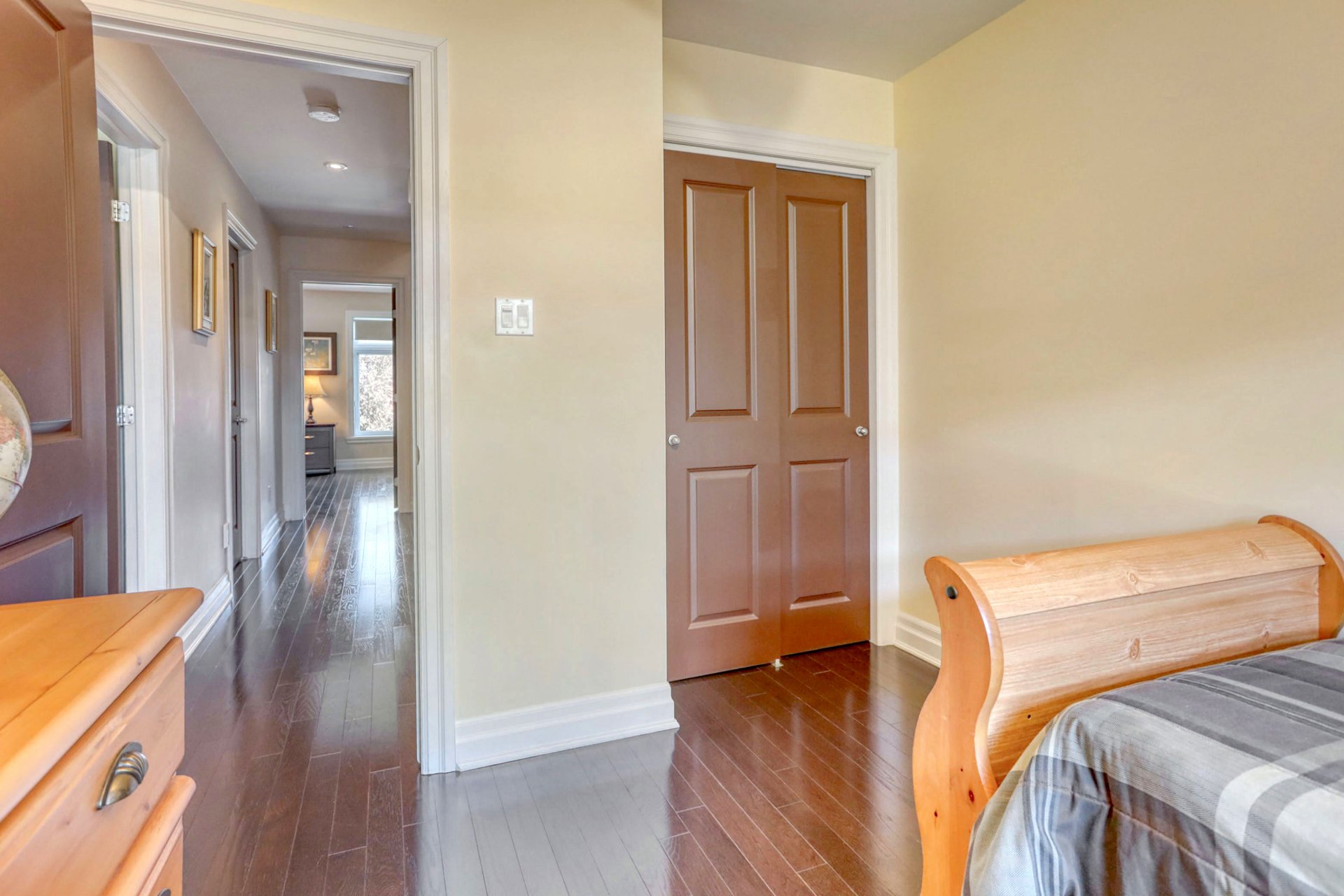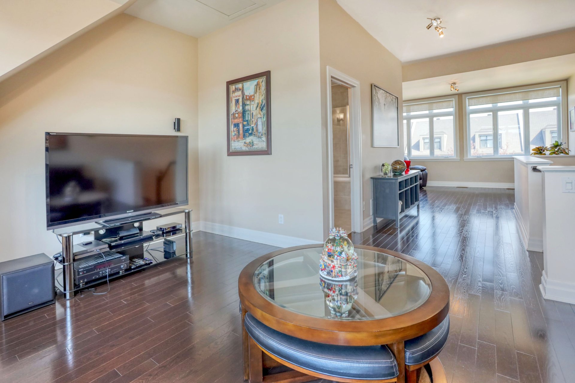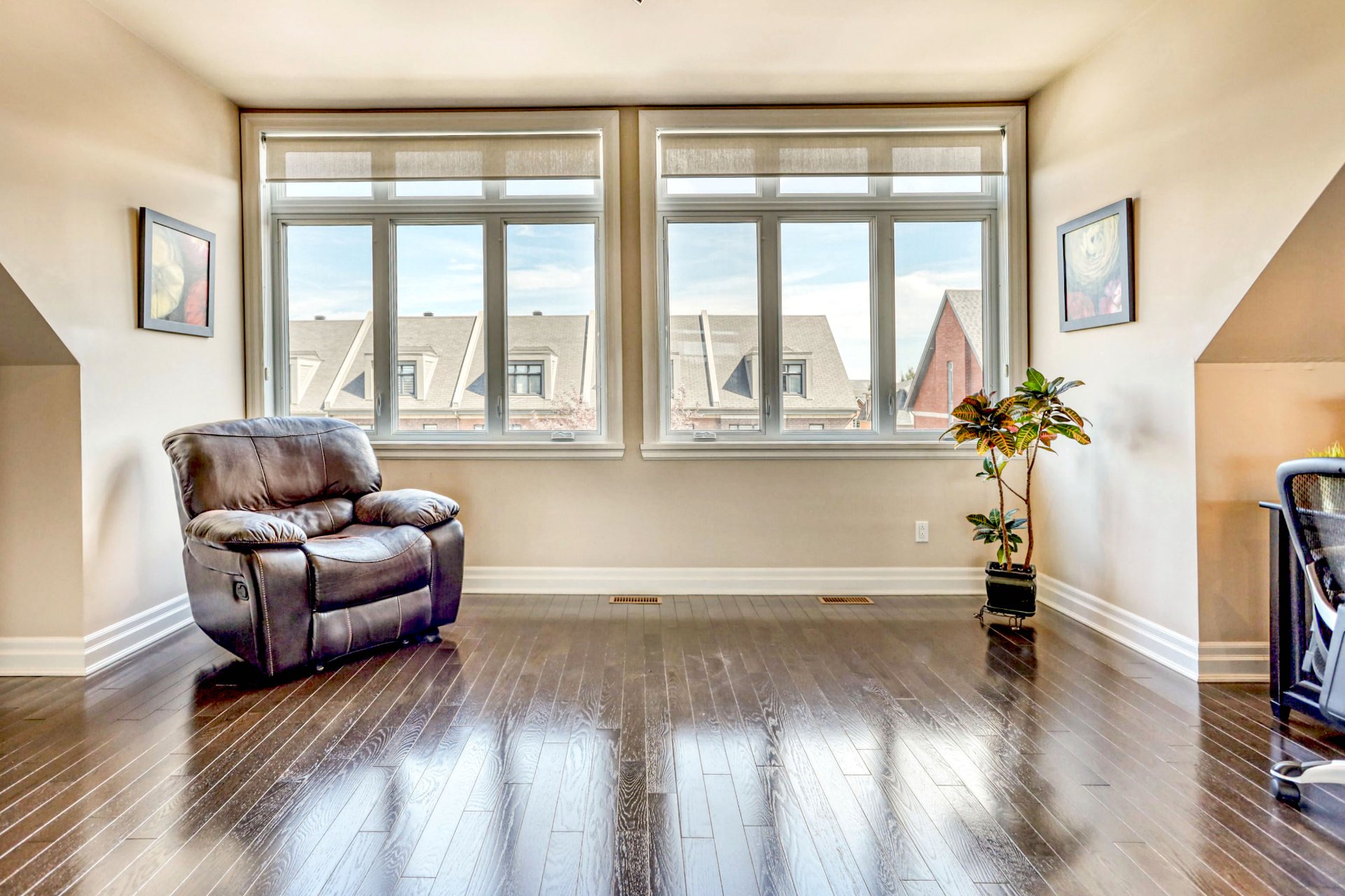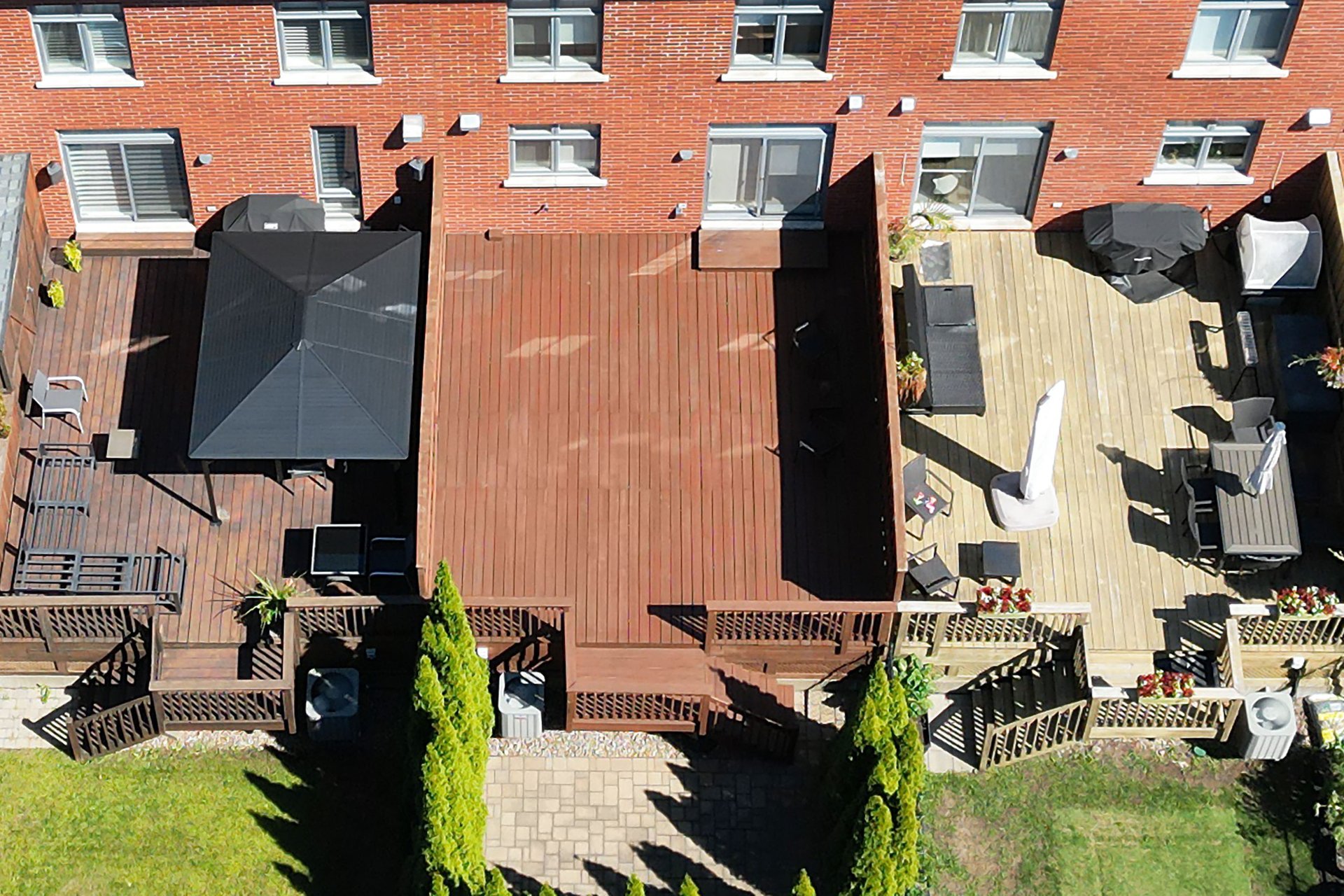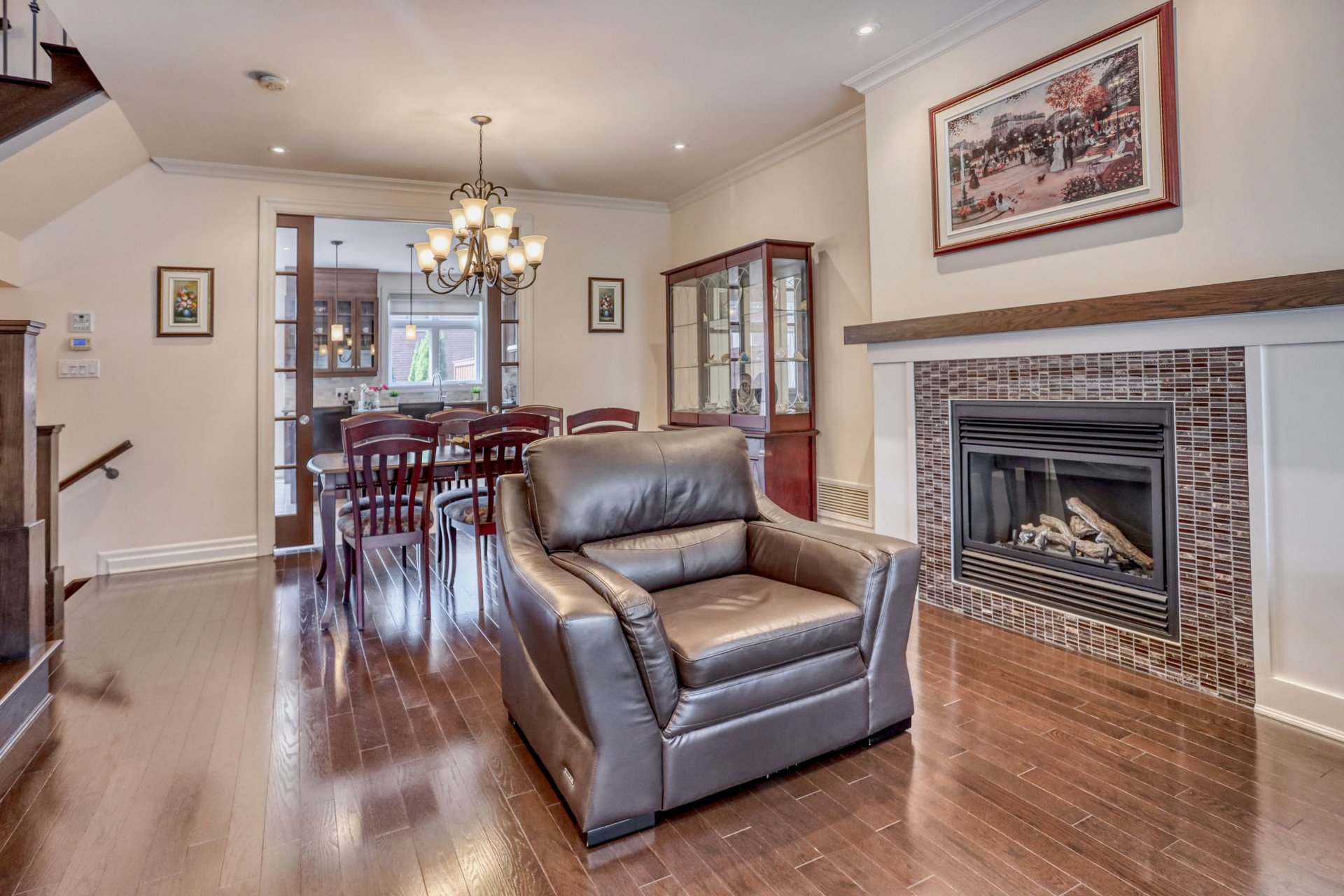 Immaculate townhouse by Sotramont - Les Villas Des Migrations - in fantastic condition. Steps to the park and located on a quiet street, this home offers a beautiful closed kitchen with granite counters, gorgeous wood floors throughout and plenty of light. Features three good size rooms, two full bathrooms with the possibility to have the master suite in the mezzanine. Gas fireplace and heating, dual zone thermostat control, private double garage and yard with large deck. Just move right in!