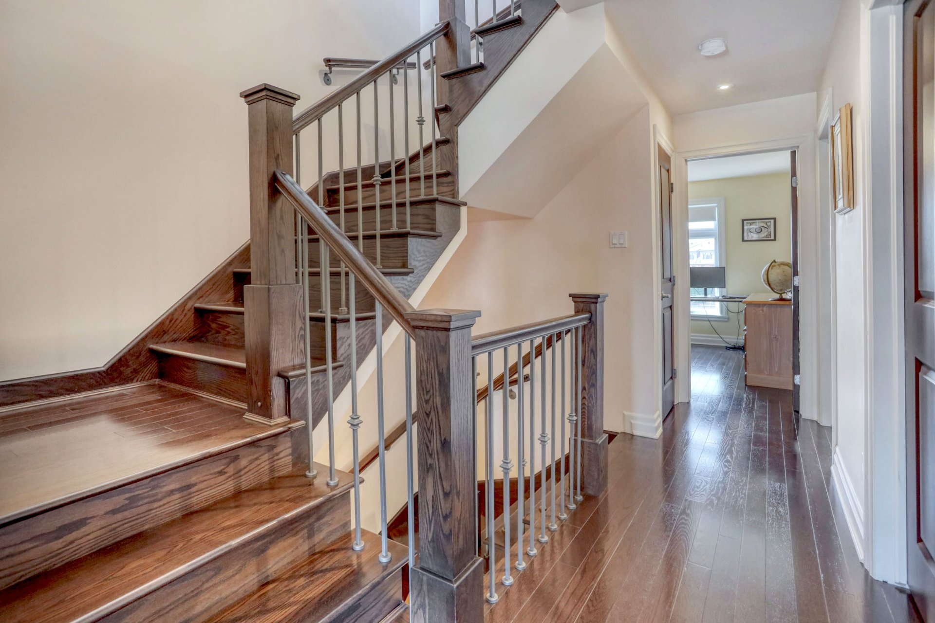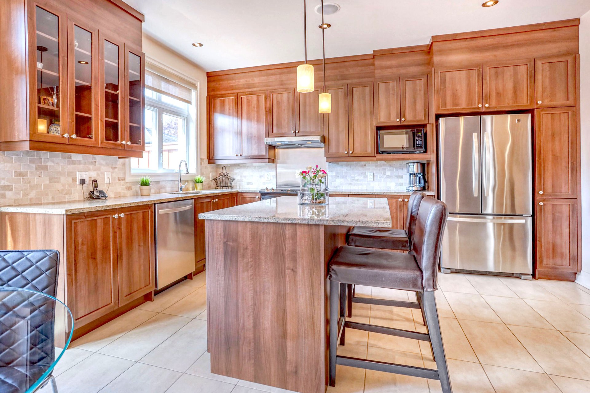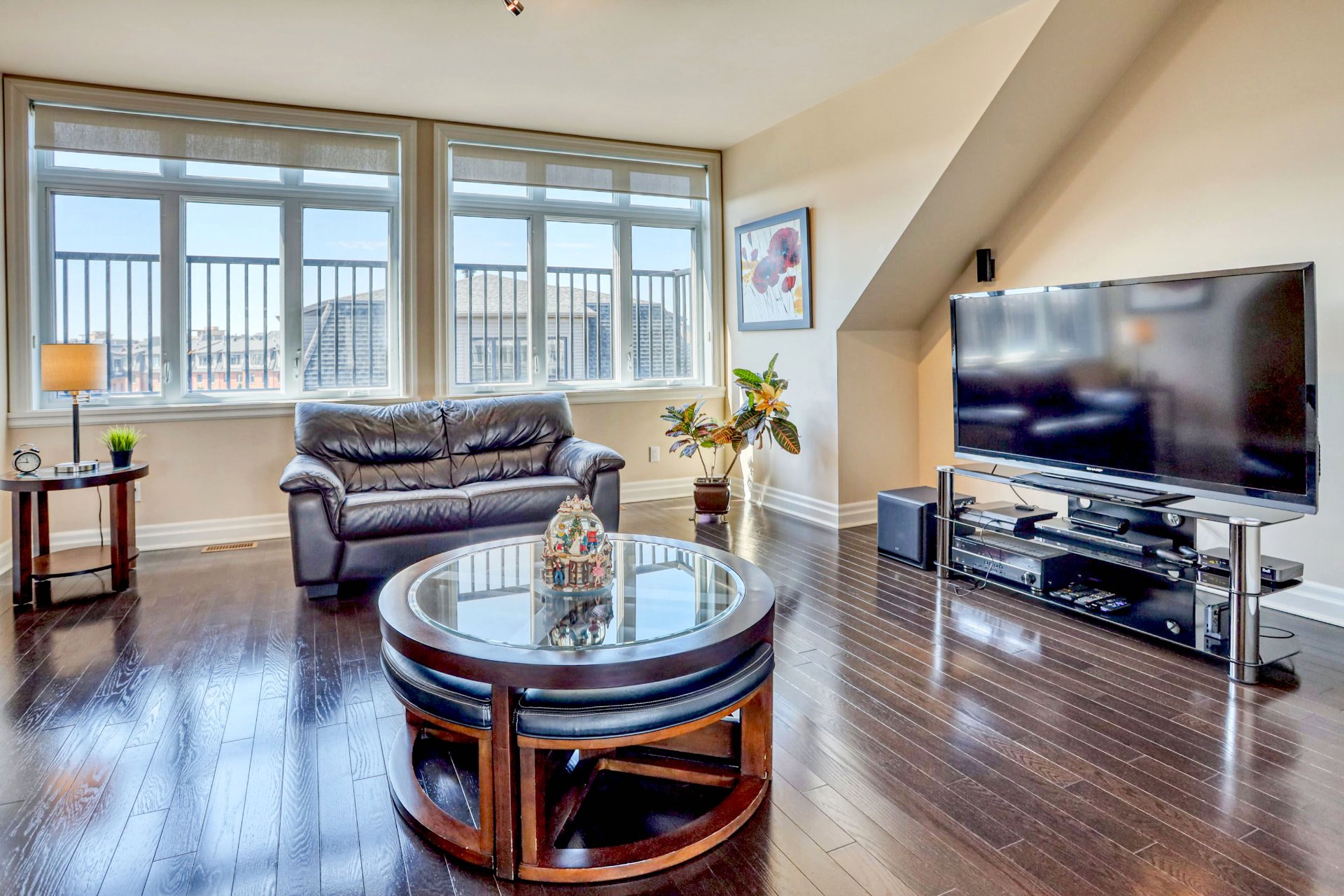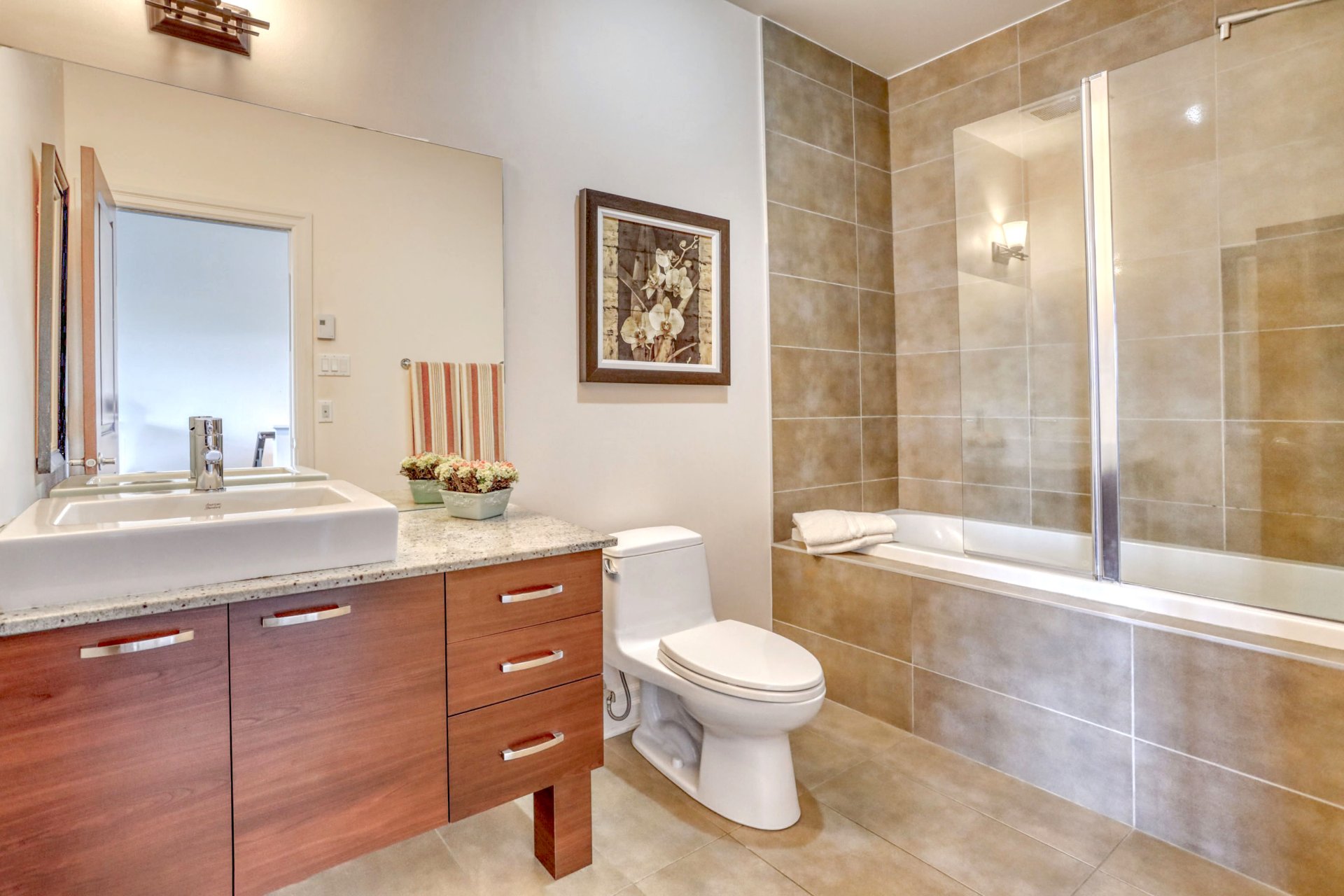 Immaculate townhouse by Sotramont - Les Villas Des Migrations - in fantastic condition. Steps to the park and located on a quiet street, this home offers a beautiful closed kitchen with granite counters, gorgeous wood floors throughout and plenty of light. Features three good size rooms, two full bathrooms with the possibility to have the master suite in the mezzanine. Gas fireplace and heating, dual zone thermostat control, private double garage and yard with large deck. Just move right in!